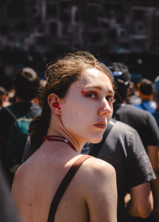 Côté accessoires et vêtements, nous sommes restés dans l’univers du festivalier : short, t-shirt de groupe, écocup, bouchon d’oreille, lunettes, etc. Nous ne voulions pas nous faire remarquer, mais plutôt nous glisser dans le décor que le Hellfest nous offrait.
